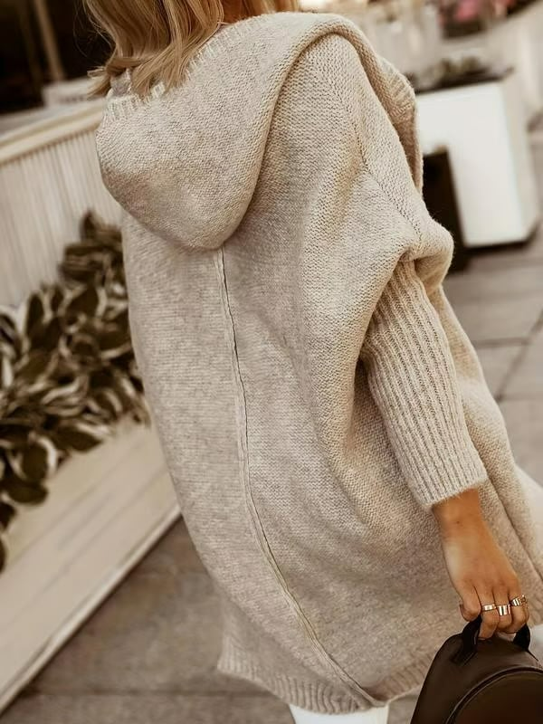 Women's Plain Chunky Open Front Long Sleeve Hooded Knitting Cardigan